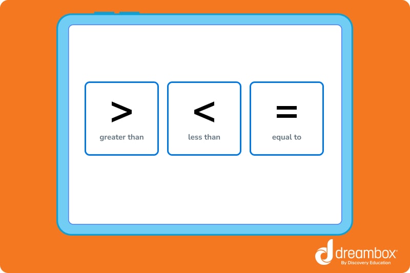 Working in pairs, students each roll one die and draw the number of dots on their paper. They then compare their dots with their partner’s and circle the larger number. Students learning greater than, less than, or equal to symbols can practice drawing those as well, so you may want a visual aid reminder. Students should play as many rounds of this game as time allows. Make it extra fun by providing small whiteboards and colorful dry erase markers!