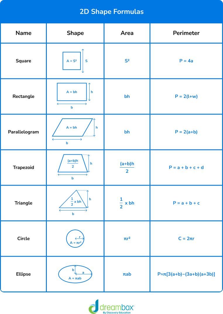Math formulas are rules or equations that help students solve problems in geometry, algebra, measurement, and more. As a classroom teacher and tutor, I encouraged students to think of formulas like “math recipes.” Just like a cake recipe tells you how much flour and butter to use, math formulas tell you what steps to follow and what order. Once students know the “ingredients” of the formula, they’ll be able to use it over and over again. This analogy helps students make an abstract idea–like formulas–more concrete.