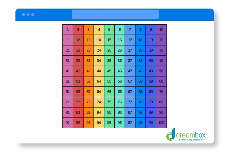 Want to help your student master the numbers 1 to 100? Introduce a hundred chart. This useful mathematical tool is a great way to develop counting skills.